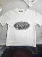 This real customer feedback image highlights the quality and precision of an embossed and printed t-shirt manufactured by Goslar Enterprises. Designed for brands that value distinction, the t-shirt combines premium fabric with advanced embossing and printing techniques to create a bold, high-end appearance.